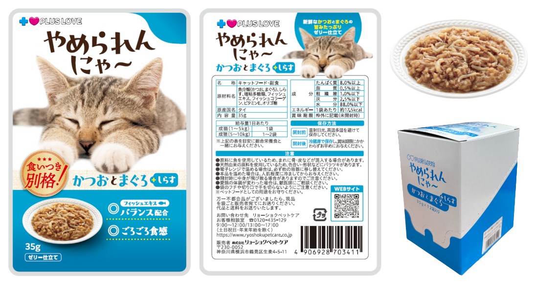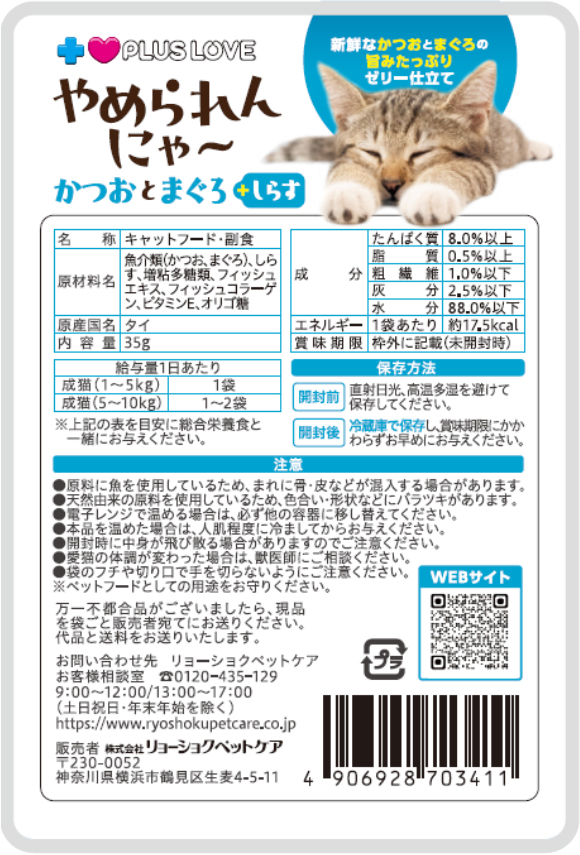 | 商品名 | プラスラブ やめられんにゃ~ かつおとまぐろ+しらす ゼリー仕立て 35g |